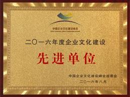 2016年8月,公司榮獲“2016年度企業文化建設先進單位”稱號