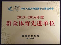 2017年8月,公司榮獲“全國群眾體育先進單位”稱號
