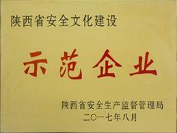 2017年8月,公司榮獲“陜西省安全文化建設示范企業”稱號