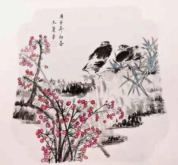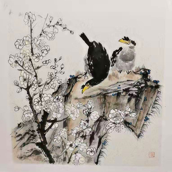 王麗繪畫作品——《春望花鳥圖》