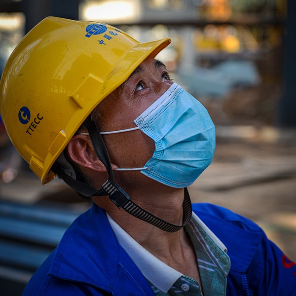 然后矗立在工地的中央