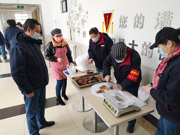 這是行政保衛部行政黨小組“黨日活動”的新創新,為了在抗疫期間提高職工的身體抵抗力,在職工食堂這塊“自留地里”里,大家琢磨著利用食堂加工的有利條件,在自助餐之外,再加工一些特色鹵制品,以放心的質量、優惠的價格提供給職工。價廉物美的鹵制品一會兒就搶購一空,“沒有豬耳朵了”“您改天再來,我們會不斷增添品種花樣……”黨員們微笑著說。