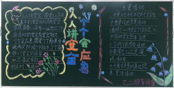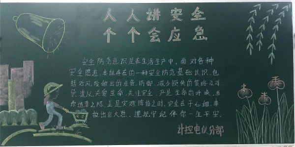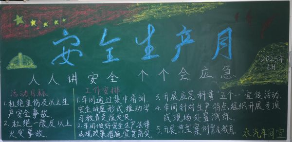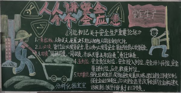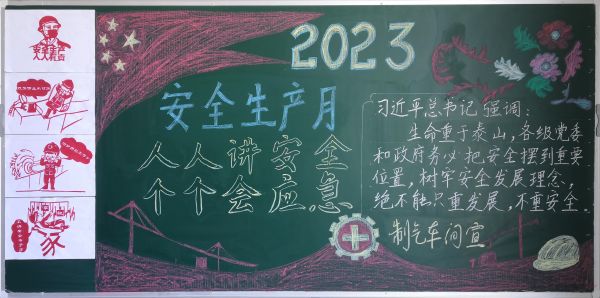 每年6月份是我國的安全生產宣傳教育月,也被稱為“安全生產月”。自開展“人人講安全、個個會應急”為主題的“安全生產月”活動啟動以來,彬州公司各部門百花齊放,精心設計黑板報的版面和內容,圖文并茂,內容豐富多彩,大力營造良好安全工作氛圍。
