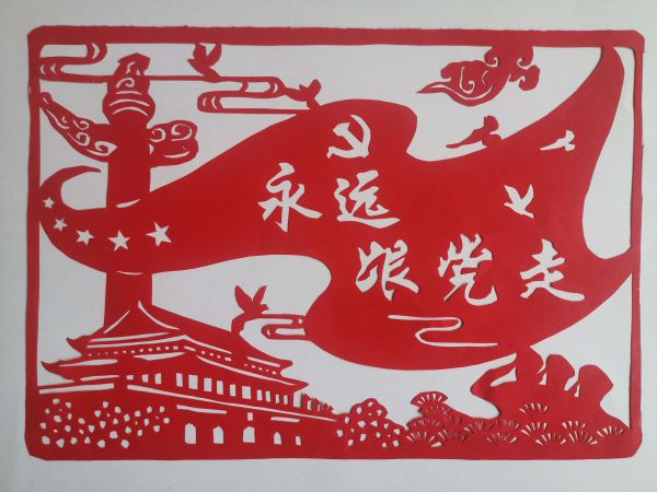 藺容剪紙作品——《祝福祖國》