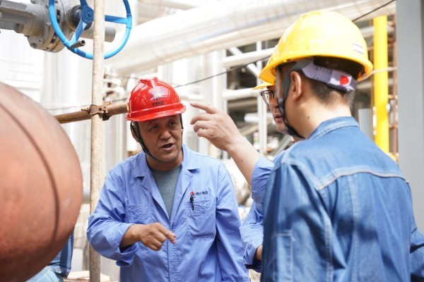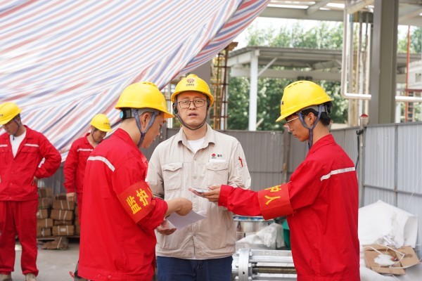 管廊間穿梭,高塔上攀爬,設備旁專注研討——這是渭化檢修人的日常戰場。烈日炙烤著鋼鐵叢林,汗水浸透工裝,但安全帽下的目光始終專注,手上的操作精準嚴謹。疲憊襲來時,一杯及時送達的清涼綠豆湯,不僅消解了暑熱,更如一股暖流,注入了繼續奮戰的力量。每一次細致的檢查,每一次認真的維修,都在默默守護著裝置的平穩運行。致敬,高溫下的堅守者!