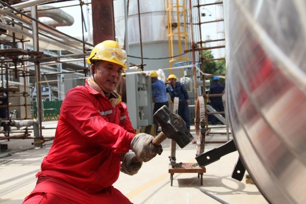 三期檢修進入攻堅戰,高溫就像太上老君的煉丹爐一樣越燒越旺。經過連續作業,參檢人員體力正在經受“烤驗”。在檢修現場與燥熱形成對比的是檢維修作業秩序井然:既有專業上的分工又有目標上的協同,既有揮汗如雨掄大錘的清脆聲又有聚精會神調校閥門的指令聲……老員工用經驗精準把控每個細節,青年骨干在急難險重任務中主動請纓;安全員頂著熱浪穿梭于各作業點嚴格監督,技術員在反復校準直至分毫不差;后勤保障人員及時送上防暑物資,管理人員靠前指揮統籌全局。